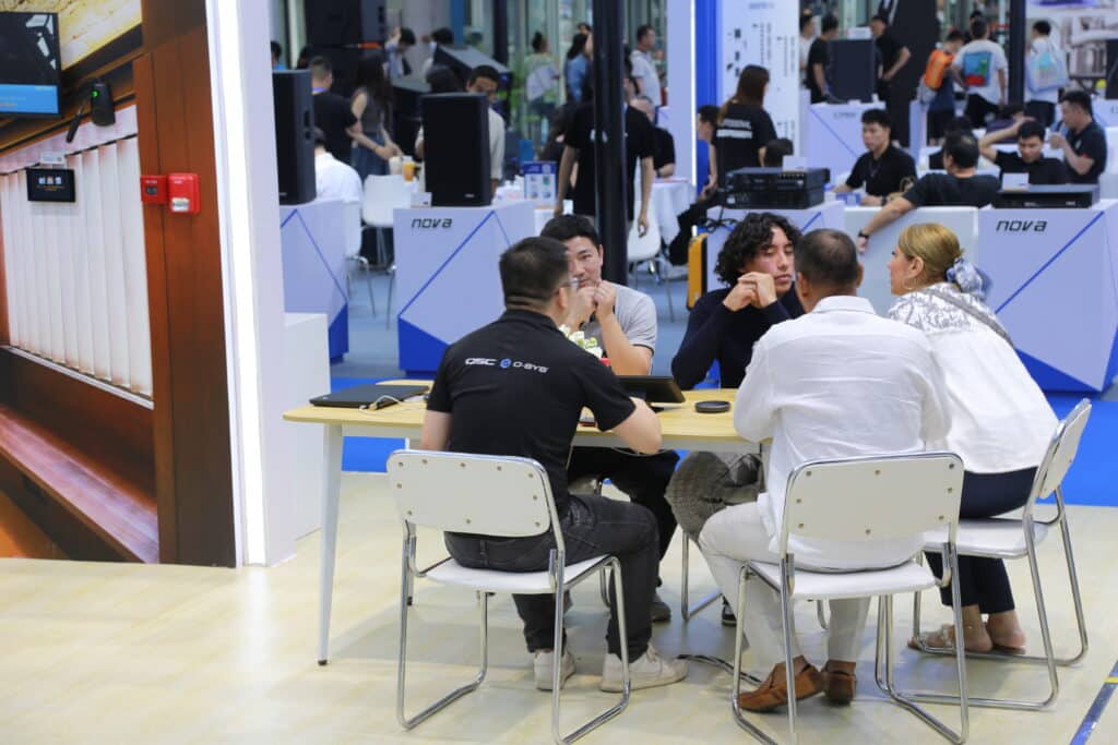 QSC ProAudio亚太区销售总监Kim Jurgensen先生、Q-SYS大中华区销售总监Eddy Leung先生,以及他们背后的一众精英同仁,满怀热忱地亲临聚沣展位现场,与我们展开了深入而富有成效的交流。凭借他们在各自领域的丰富经验,他们与我们分享了最新的技术趋势、市场动态以及未来发展方为我们提供了宝贵的参考和启示。向,