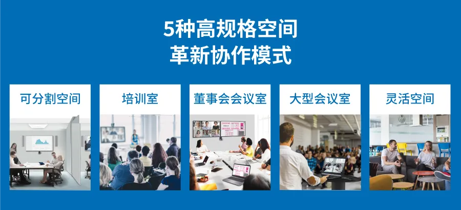 高规格空间——动态且可拓展的会议空间,能够为现场和远程混合参会者提供身临其境、引人入胜的体验。