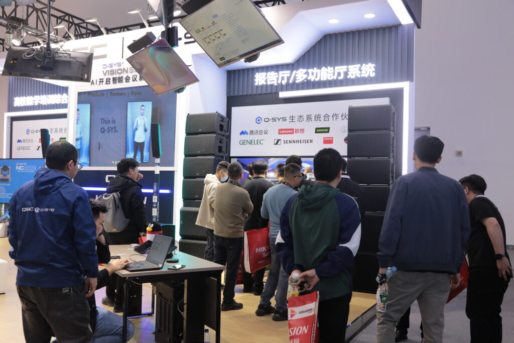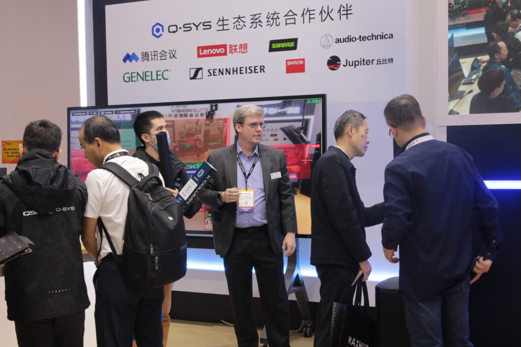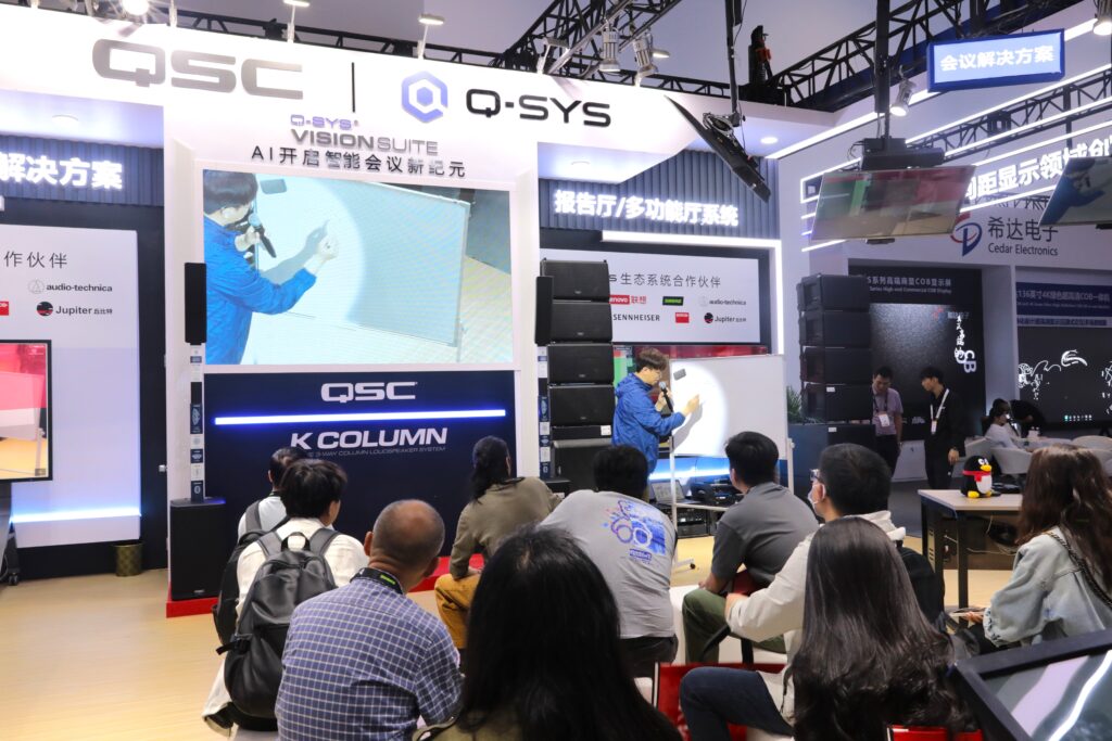 在聚沣展台上举行了多场Q-SYS VisionSuite分享会,深入讲解AI驱动的智能化会议解决方案的优势。