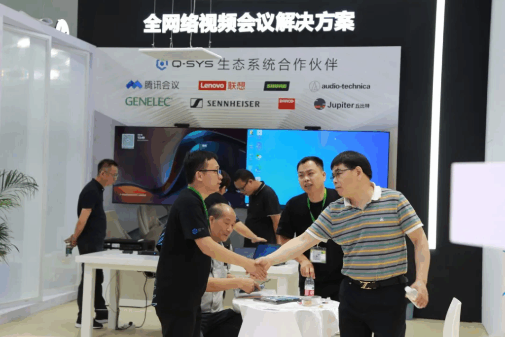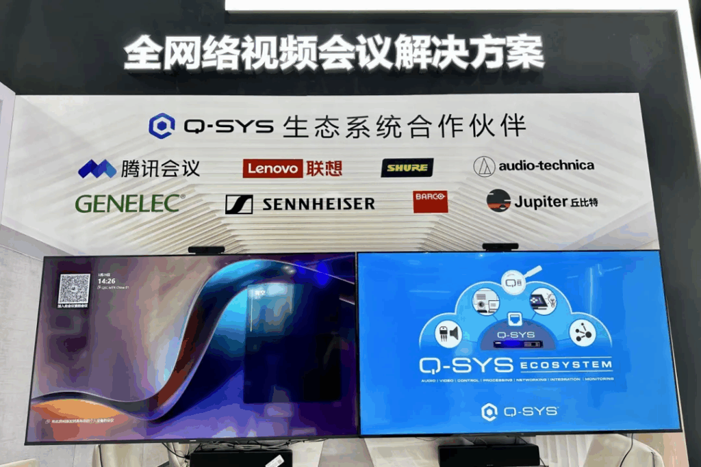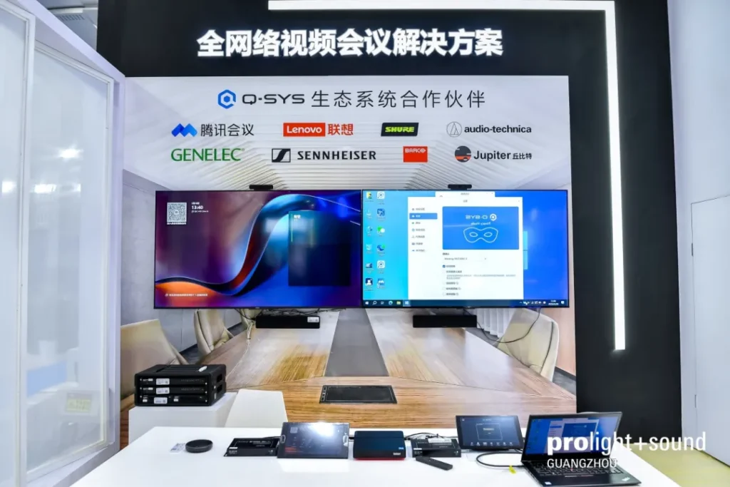 Q-SYS将生态合作作为核心战略,打造了覆盖全球的顶尖合作伙伴网络。这一生态系统汇聚了各领域领先的软硬件厂商,通过严格的认证体系和深度技术协作,持续推动音视频技术的融合创新。在Prolight+Sound展会现场,Q-SYS联合铁三角、巴可、森海塞尔、Shure、腾讯会议、联想、Jupiter、真力等知名品牌,共同呈现了丰富的场景化解决方案。依托其卓越的系统整合能力,Q-SYS能够针对各类应用场景,灵活调配生态伙伴的技术优势,为客户提供兼具高性能与易用性的定制化音视频系统。这种创新的生态协作模式不仅精准匹配用户个性化需求,更引领着音视频行业向智能化、协同化的方向发展,为整个产业的升级注入持续动力。