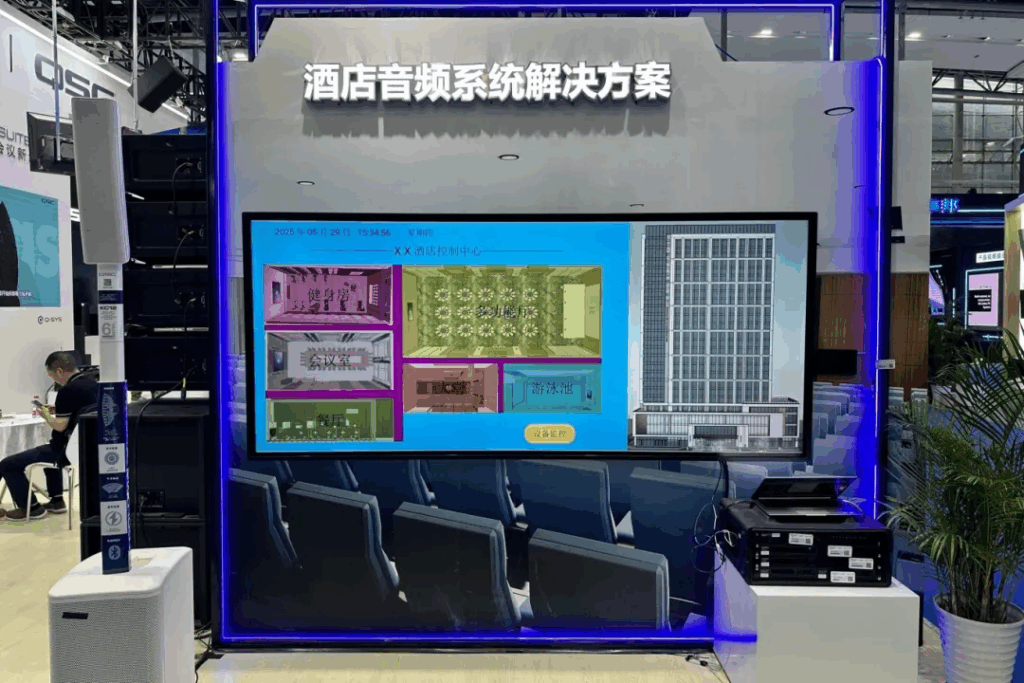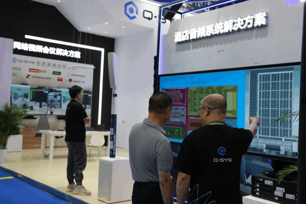 Q-SYS酒店商用音乐系统在展会现场大放异彩!我们通过沉浸式场景演示,向业界展示了智能化音频解决方案的革新应用:酒店平面图分区触控系统实现精准区域管理,智能广播功能满足多样化场景需求,搭配多场景可视化集中控制(UCI)平台,完美呈现“一屏掌控”的酒店音频管理新体验。现场观众通过互动演示,亲身感受了Q-SYS系统为酒店行业带来的音效升级与运营效率提升。